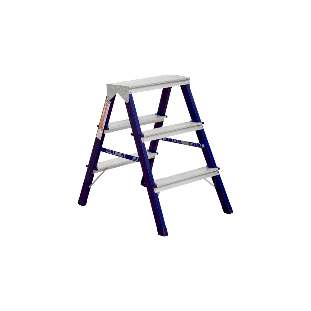 Двухсторонняя стремянка стальная окрашенная с алюминиевыми ступенями 3 ст. MD8203 Алюмет