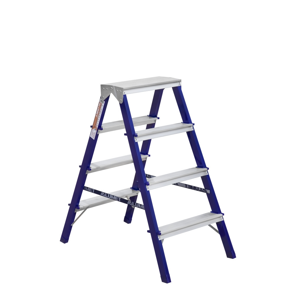 Двухсторонняя стремянка стальная окрашенная с алюминиевыми ступенями 4 ст. MD8204 Алюмет