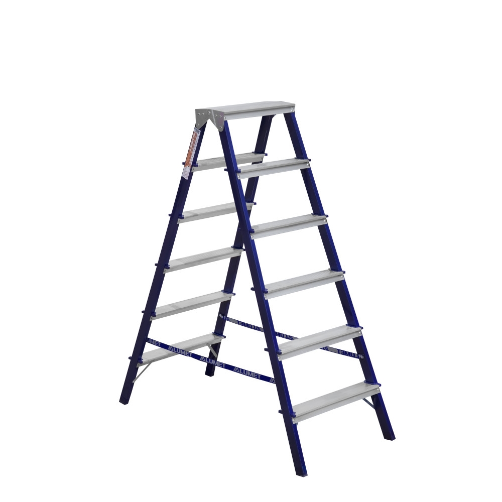 Двухсторонняя стремянка стальная окрашенная с алюминиевыми ступенями 6 ст. MD8206 Алюмет