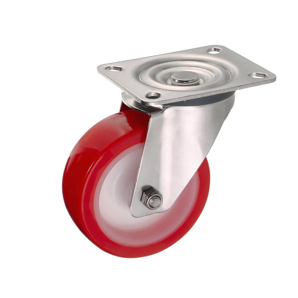 Колесо с основанием из полиамида 6 и шинкой из термопластичного полиуретана твердостью 55 Шор D. В ступице расположен подшипник скольжения, обеспечивающий плавное вращение. Поворотный кронштейн изготовлен из коррозионностойкой нержавеющей стали и оснащён двухрядным подшипником, повышающим надёжность и долговечность узла.