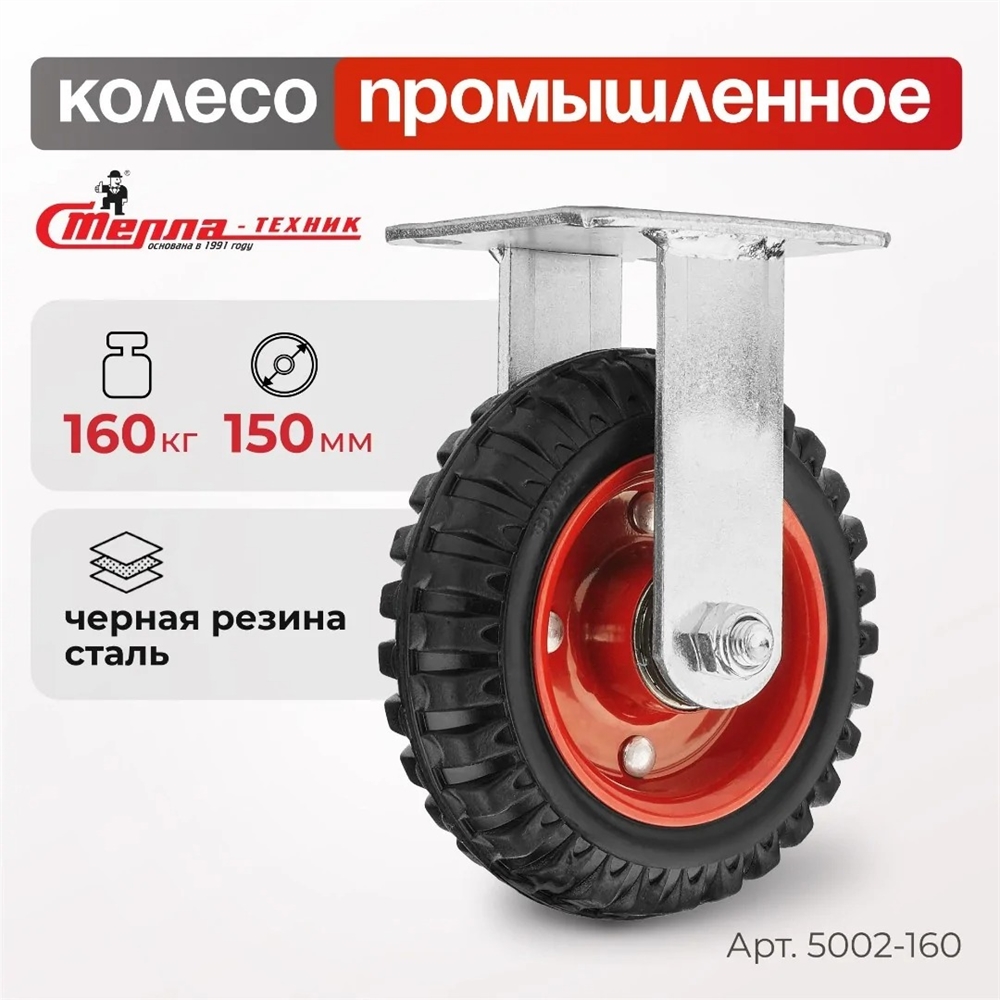 Колесо промышленное неповоротное Стелла-техник 5002-160 (150 мм; г/п 160 кг), черная резина с протектором