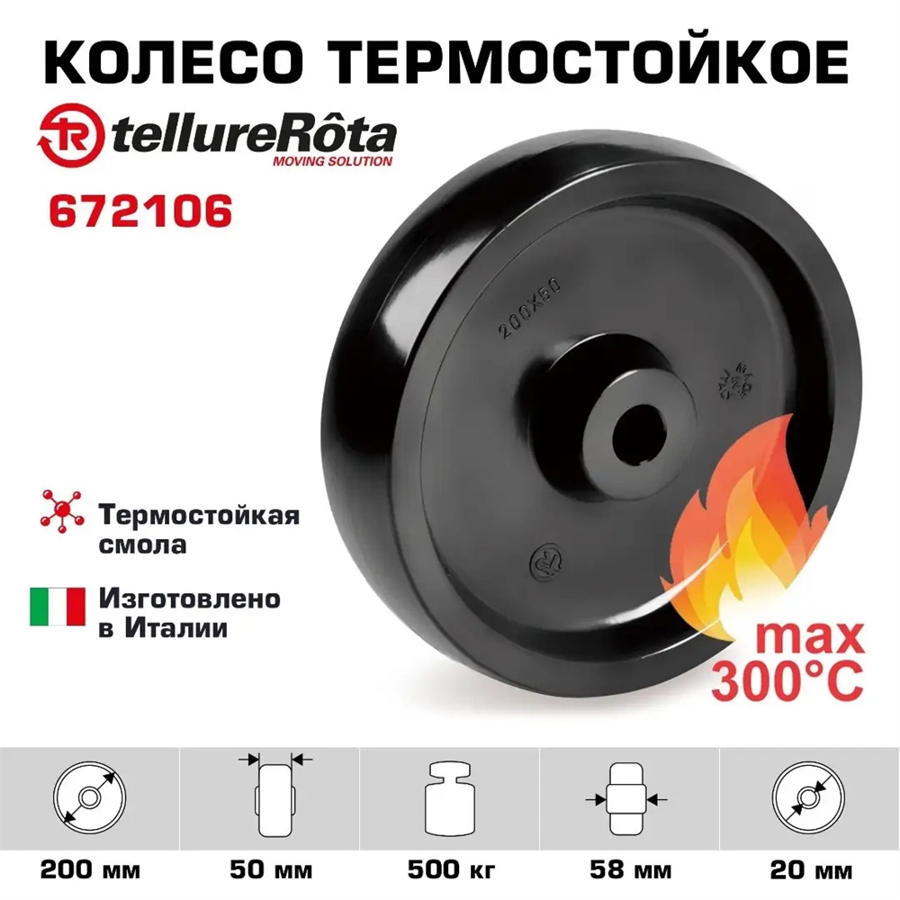 Колесо термостойкое до 300 °C Tellure Rota 672106 под ось 20 мм (200 мм; 500 кг), фенольное