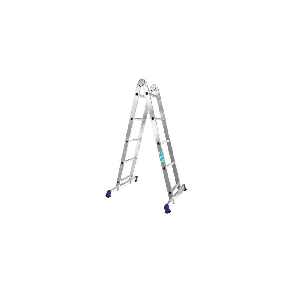 Лестница состоит из двух секций, соединенных между собой стальными лестничными шарнирами с углами фиксации 35, 105 и 180 градусов. Такая лестница может принимать вид двухсторонней стремянки и приставной лестницы.