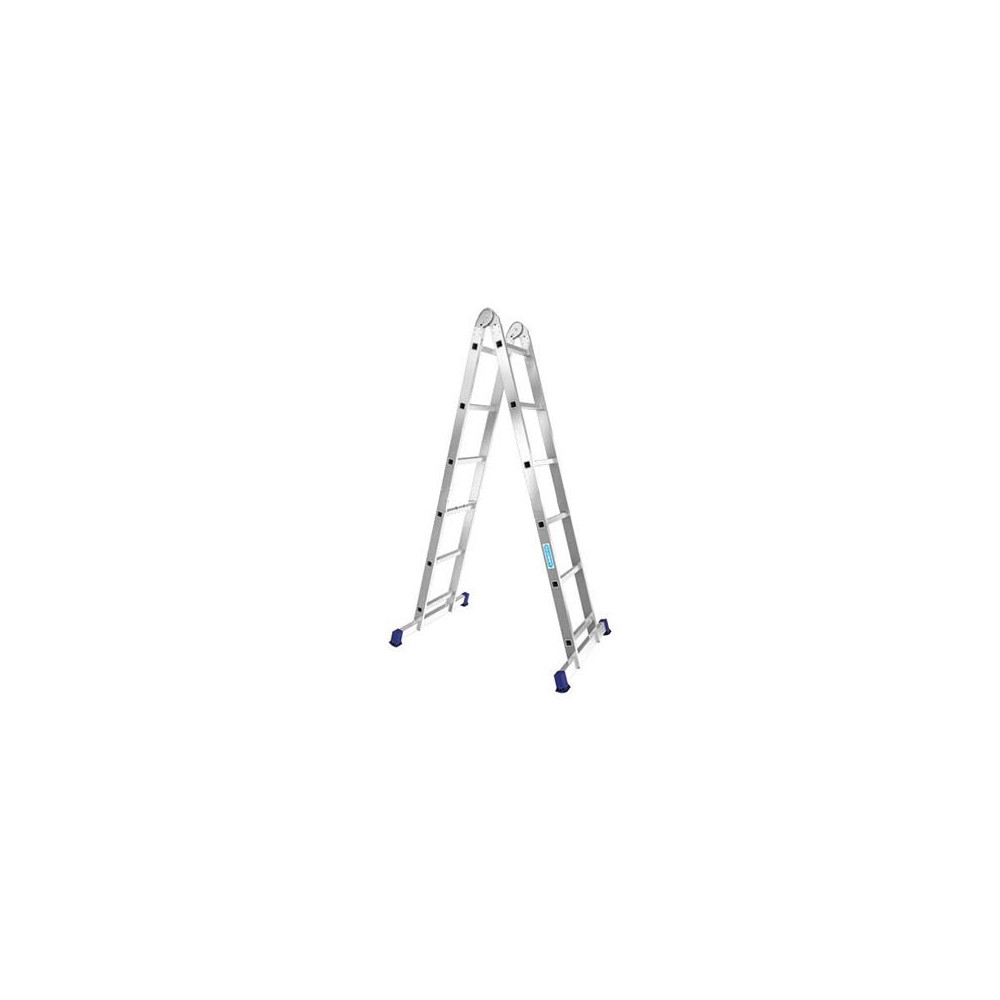 Лестница состоит из двух секций, соединенных между собой стальными лестничными шарнирами с углами фиксации 35, 105 и 180 градусов. Такая лестница может принимать вид двухсторонней стремянки и приставной лестницы.