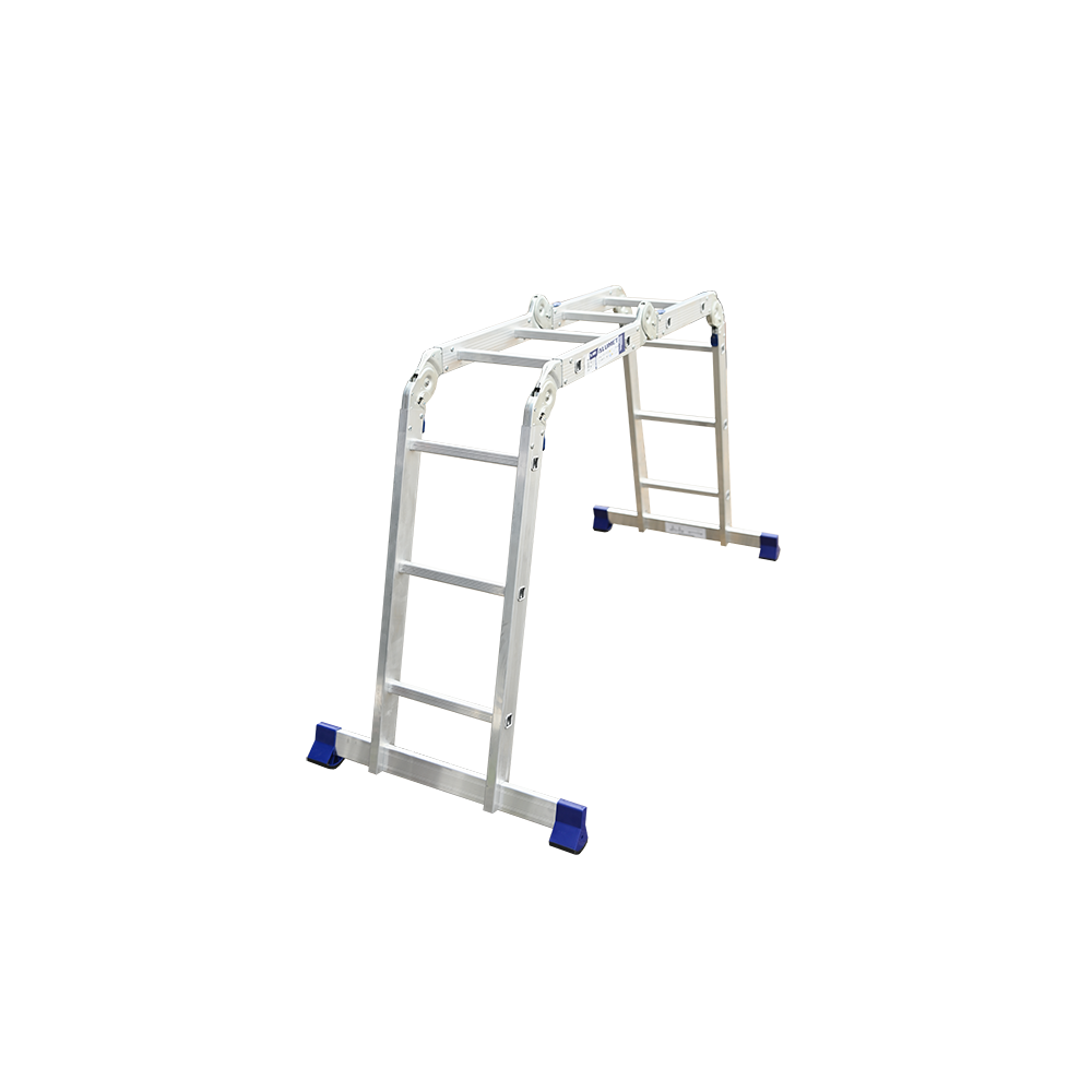 Лестница состоит из четырех секций, соединенных между собой стальными лестничными шарнирами с углами фиксации 35, 105 и 180 градусов. Поэтому такая лестница может принимать различные формы, такие как на рисунке.