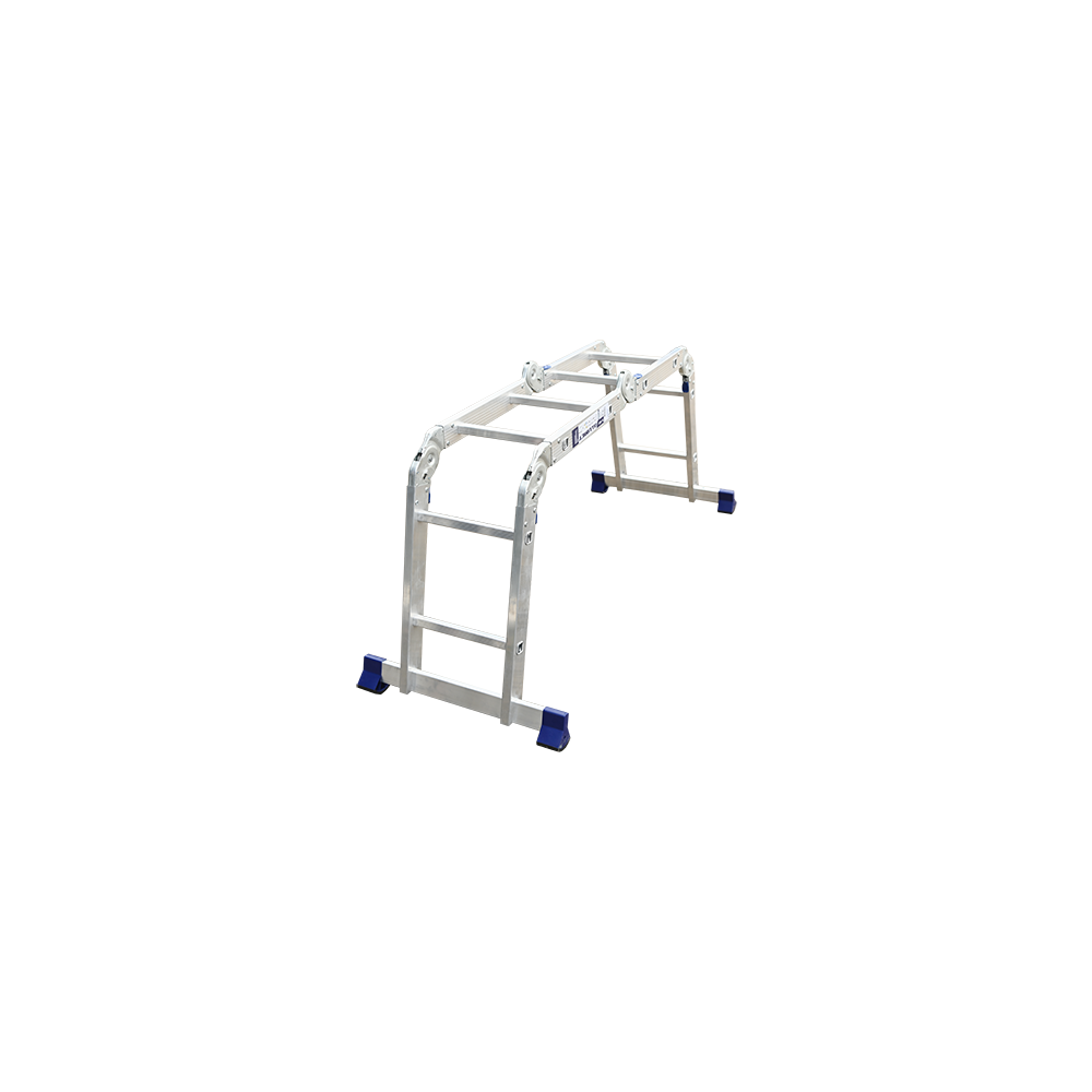 Лестница состоит из четырех секций, соединенных между собой стальными лестничными шарнирами с углами фиксации 35, 105 и 180 градусов. Поэтому такая лестница может принимать различные формы, такие как на рисунке.