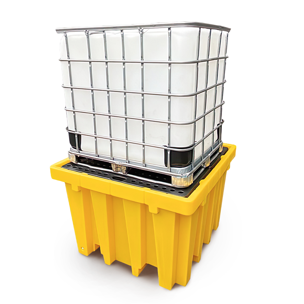 - возможность установить сливную систему, позволяющую удалять локализованную жидкость, не снимая кубовые емкости с поддона, без использования дополнительного оборудования