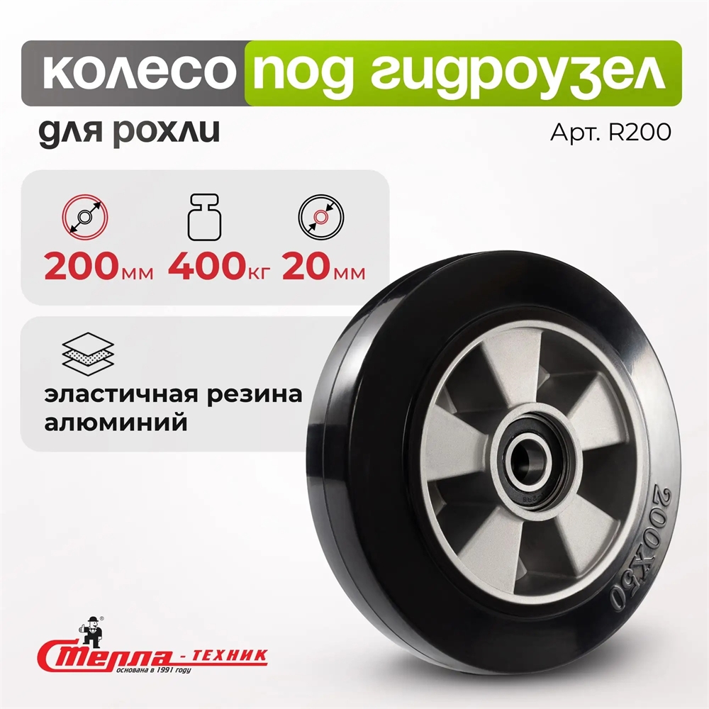 Рулевое колесо обрезиненное с подшипником (втоплен) Стелла-техник R200 (200 мм; г/п 400 кг)