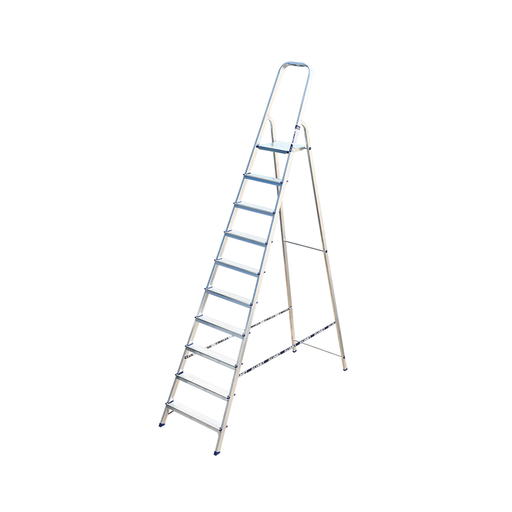 Стремянка алюминиевая изготовлена из высокопрочного алюминиевого профиля. Задняя и передняя нога соединены между собой. Рабочая площадка выполнена из оцинкованной стали. Ступени имеют рифленую поверхность. Башмаки изготовлены из высокопрочного пластика. Стремянка в рабочем положении надежно фиксируется рабочей площадкой, а начиная с пятиступенчатой и выше страховочными ремнями. Количество ступеней от 3-х до 10-и. Стремянка алюминиевая серии АМ предназначена для проведения различных видов работ на высоте до 4 м как в быту, так и на производстве.