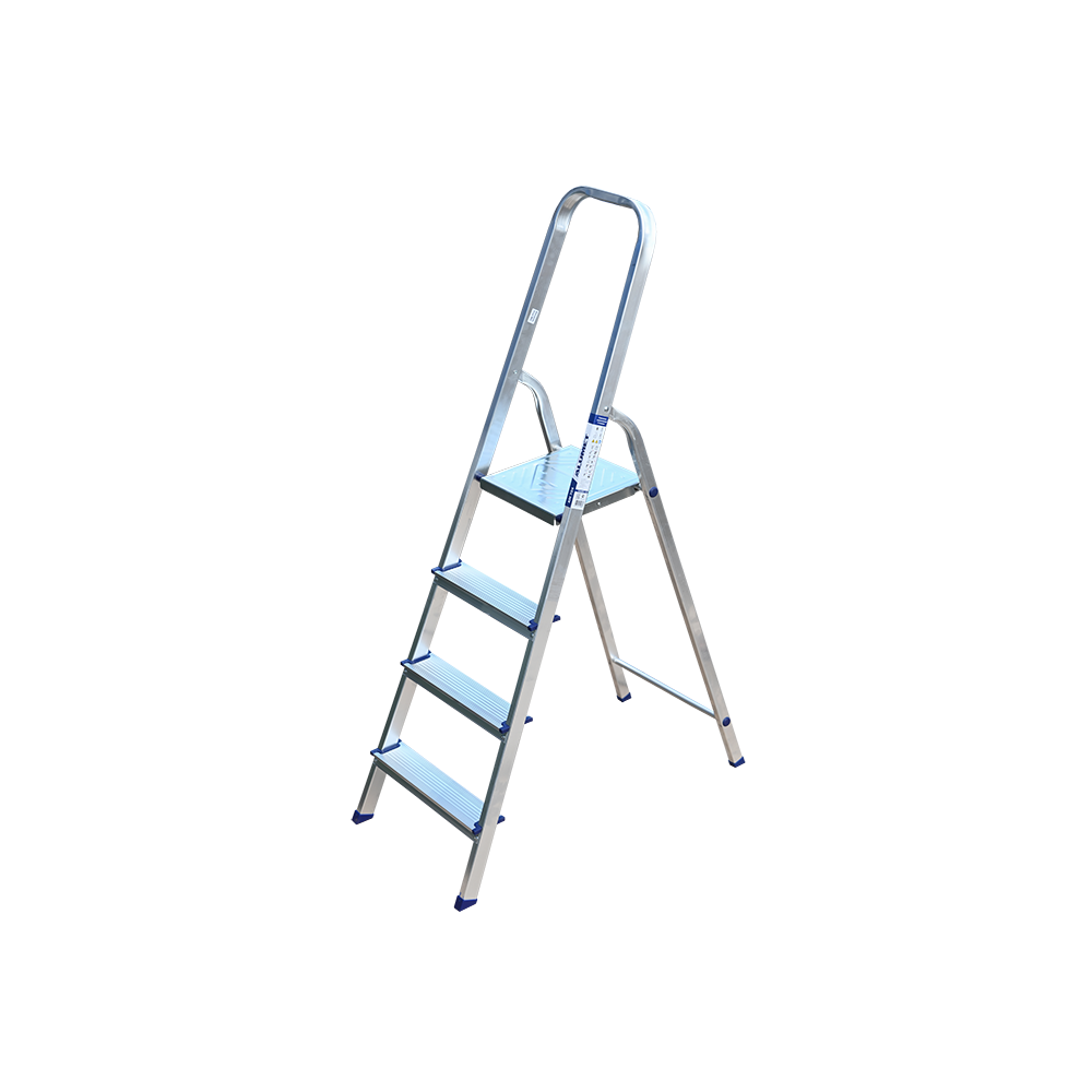 Стремянка алюминиевая изготовлена из высокопрочного алюминиевого профиля. Задняя и передняя нога соединены между собой. Рабочая площадка выполнена из оцинкованной стали. Ступени имеют рифленую поверхность. Башмаки изготовлены из высокопрочного пластика. Стремянка в рабочем положении надежно фиксируется рабочей площадкой, а начиная с пятиступенчатой и выше страховочными ремнями. Количество ступеней от 3-х до 10-и. Стремянка алюминиевая серии АМ предназначена для проведения различных видов работ на высоте до 4 м как в быту, так и на производстве.
