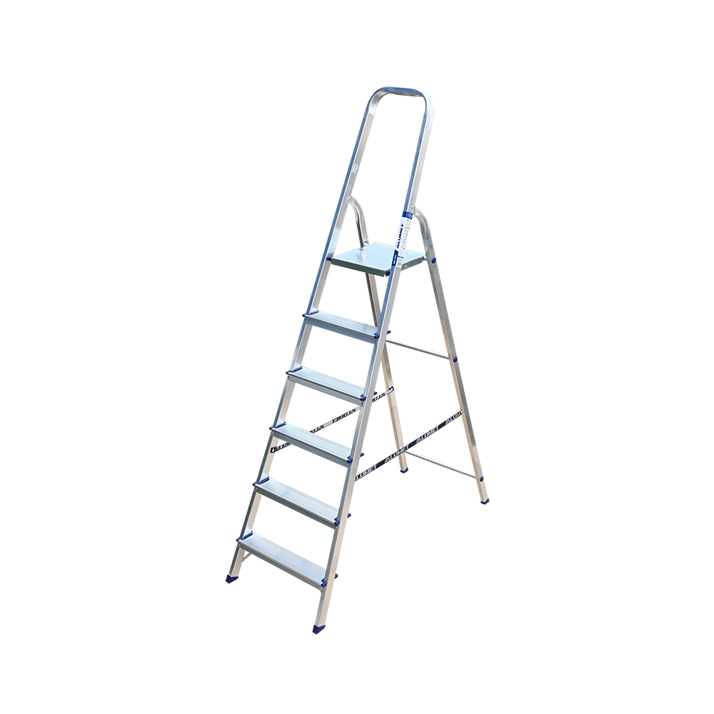 Стремянка алюминиевая изготовлена из высокопрочного алюминиевого профиля. Задняя и передняя нога соединены между собой. Рабочая площадка выполнена из оцинкованной стали. Ступени имеют рифленую поверхность. Башмаки изготовлены из высокопрочного пластика. Стремянка в рабочем положении надежно фиксируется рабочей площадкой, а начиная с пятиступенчатой и выше страховочными ремнями. Количество ступеней от 3-х до 10-и. Стремянка алюминиевая серии АМ предназначена для проведения различных видов работ на высоте до 4 м как в быту, так и на производстве.
