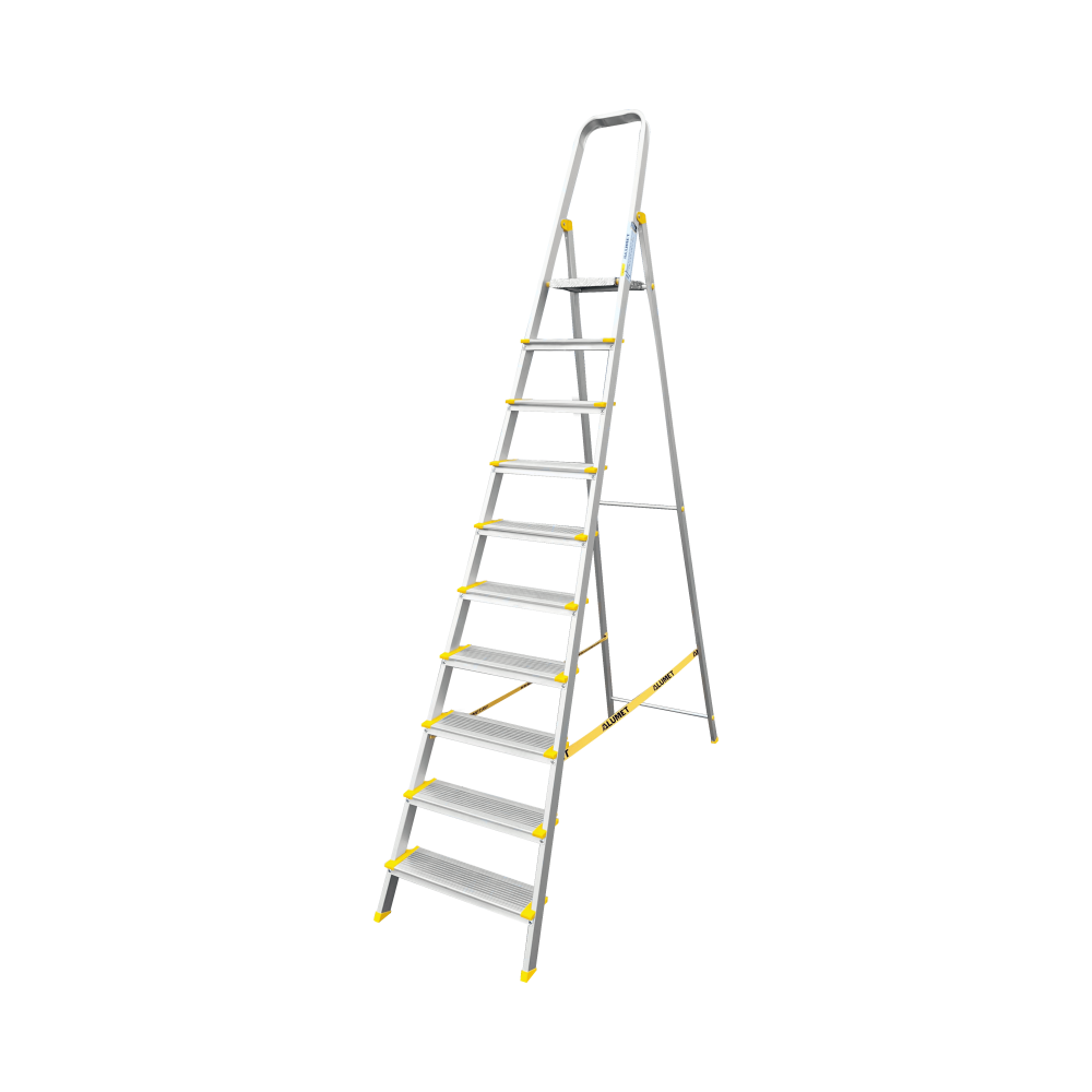 Стремянка алюминиевая профессиональная, анодированная, ширина ступени 130 мм. 10 ст. AS710 Алюмет