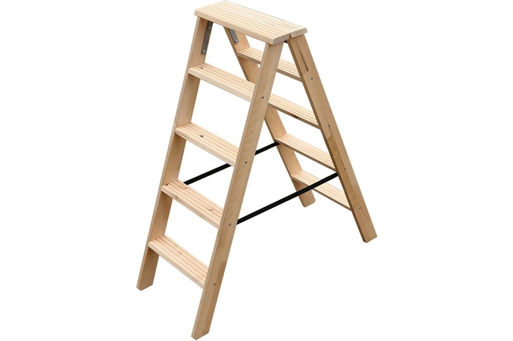 Стремянка деревянная двусторонняя с широкими ступенями 5 ст WDS3205 Алюмет