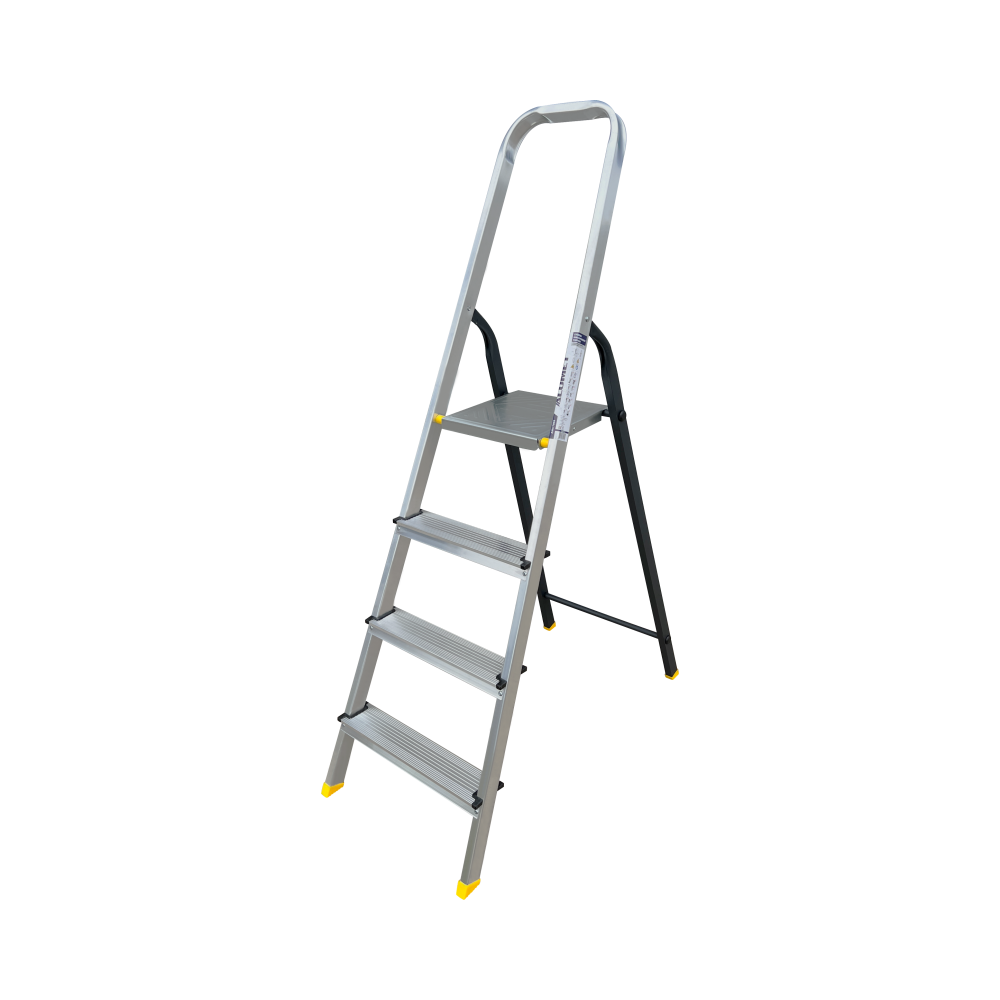 Стремянка комбинированная усиленная, алюминиевая со стальной задней ногой 4 ст. AMS7804 Алюмет