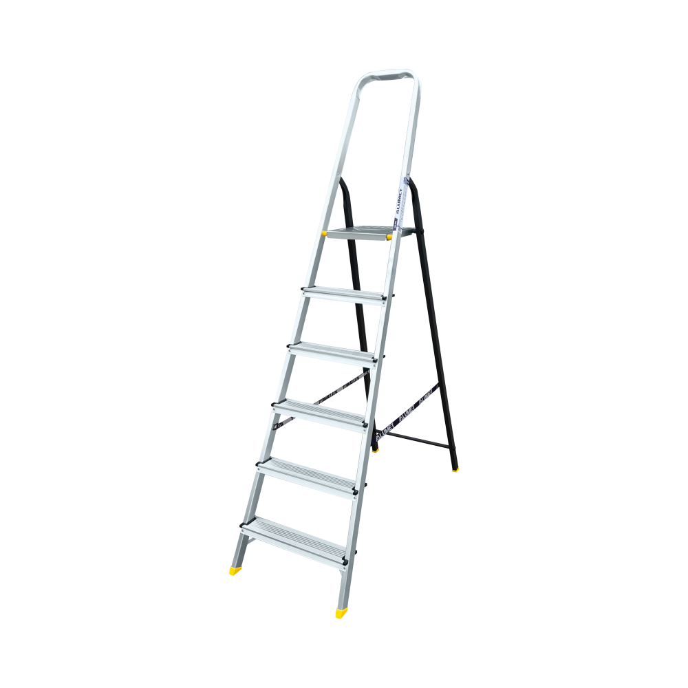 Стремянка комбинированная усиленная, алюминиевая со стальной задней ногой 6 ст. AMS7806 Алюмет