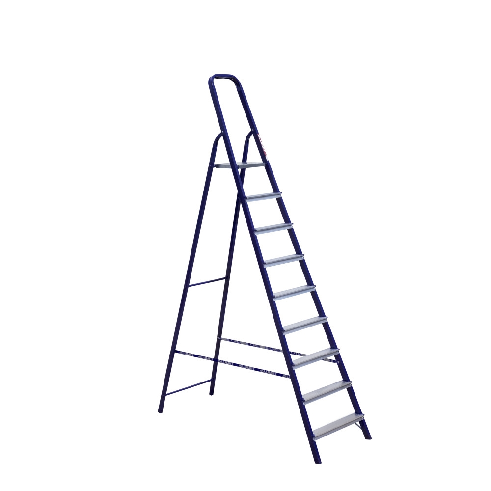 Тетивы стремянки стальной выполнены из прочного стального профиля, защищенного от коррозии эпоксидной порошковой эмалью. Задняя и передняя нога соединены между собой. Рабочая площадка выполнена из оцинкованной стали. Ступени имеют рифленую поверхность и изготовлены из высокопрочного алюминиевого профиля. Башмаки изготовлены из высокопрочного пластика. Стремянка в рабочем положении надежно фиксируется рабочей площадкой, а начиная с пятиступенчатой и выше. страховочными ремнями. Количество ступеней от 3-х до 10-и. Стремянка стальная серии М предназначена для проведения различных видов работ на высоте до 4 м как в быту, так и на производстве.
